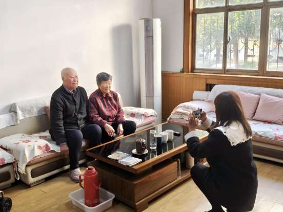 活动现场设立了温馨的拍照区,背景布置着寓意吉祥的菊花与祝福,社区工作人员热情引导老人们拍照留念。有的老两口手挽手并肩而立,脸上洋溢着甜蜜的笑容;有的和好姐妹在一起,畅谈着生活趣事,镜头定格下一幕幕温馨画面。针对行动不便、无法出门的老年人,社区网格员主动上门服务,为他们拍摄生活照,并送上节日的问候。