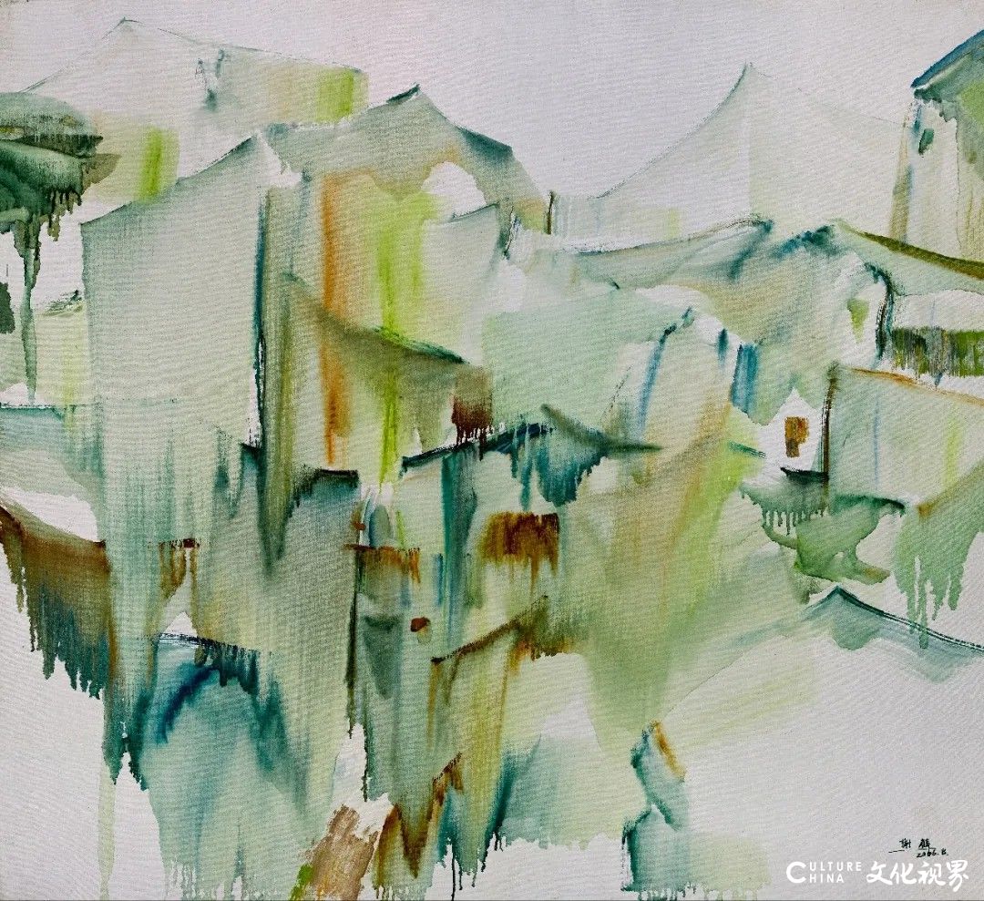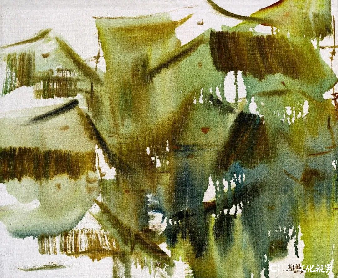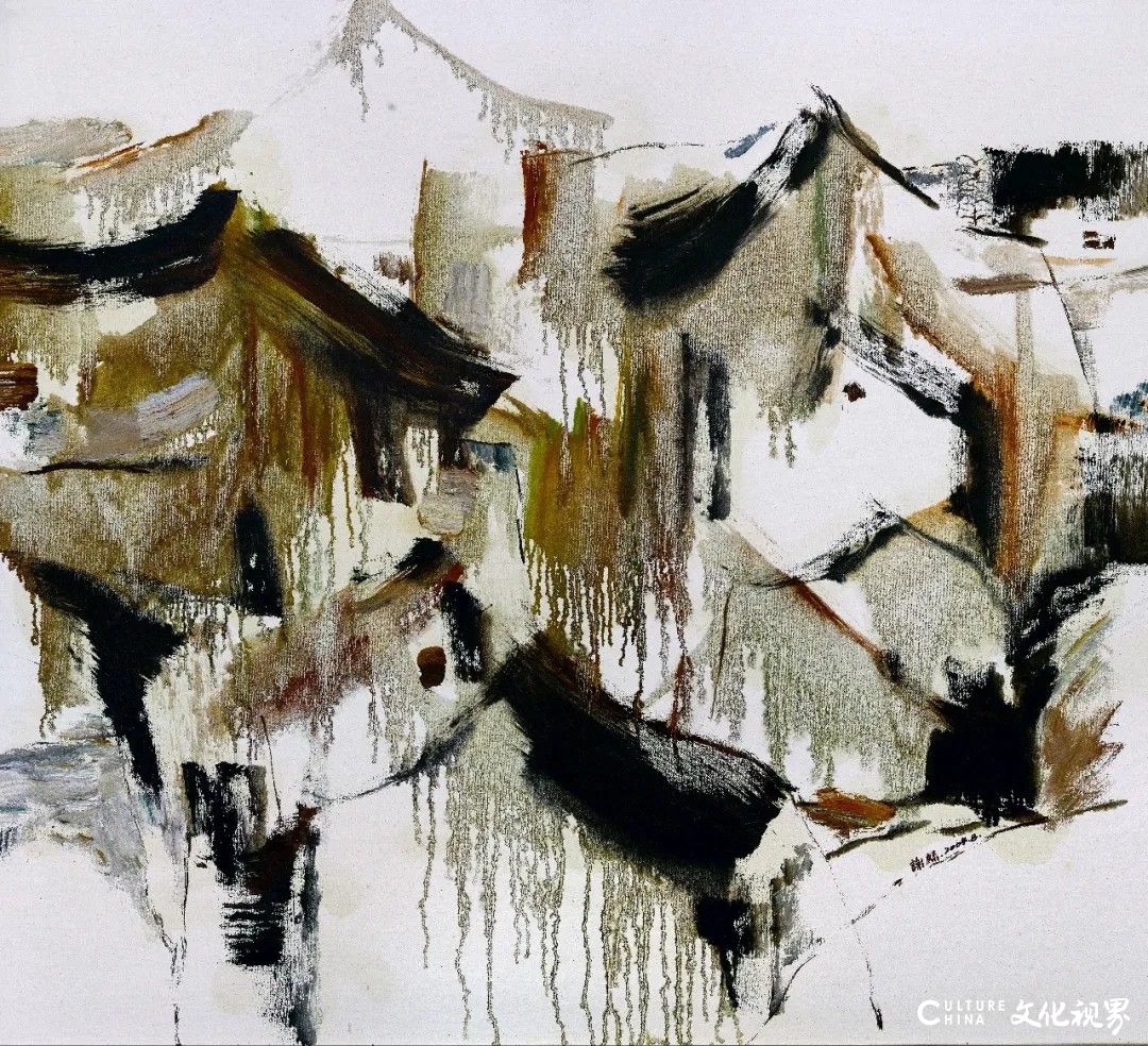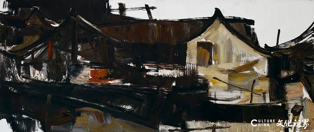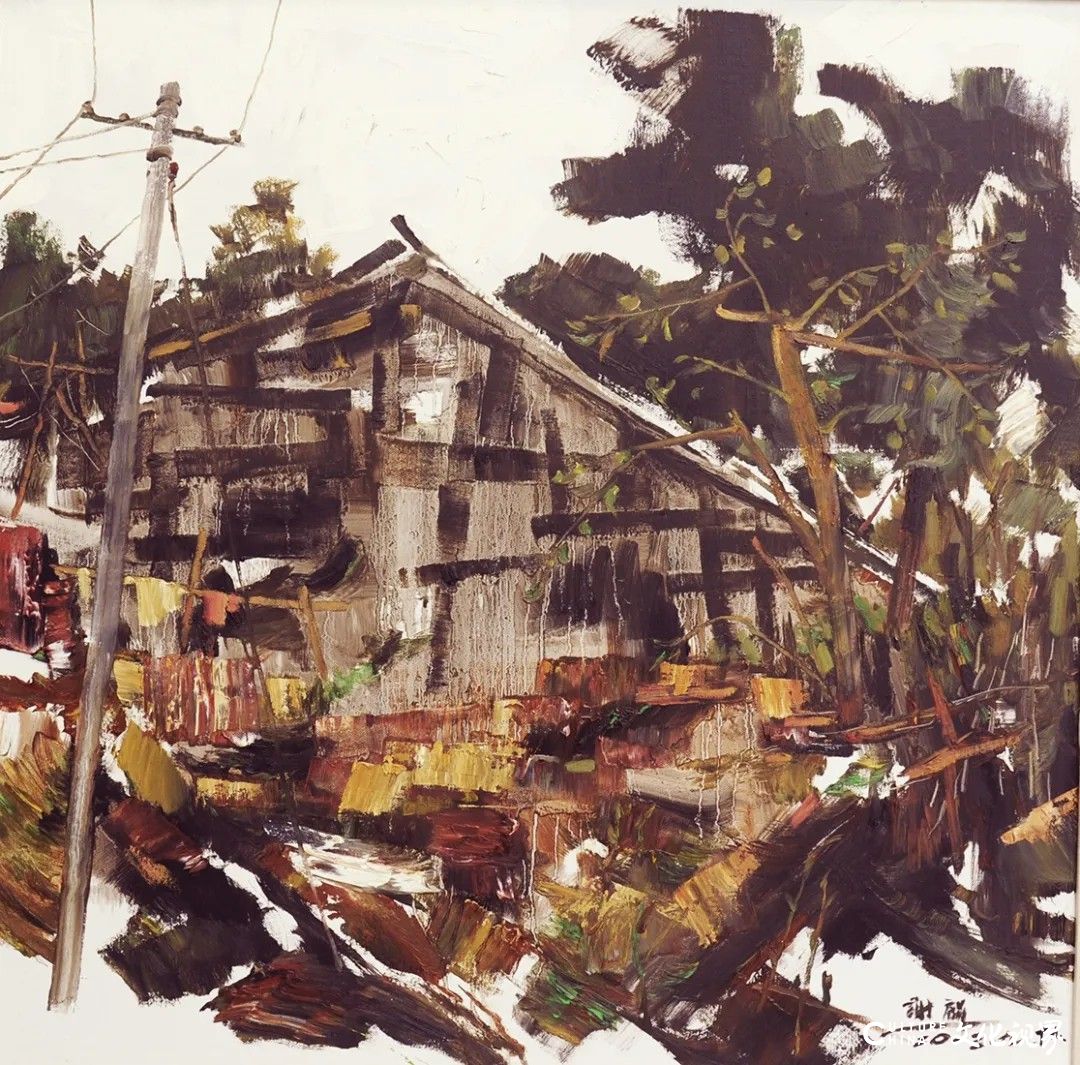 墨色是谢麟艺术语言的核心,他对色彩的运用,早已挣脱“浓淡干湿”的表层技法,直抵“五色分明”的精神境界。他笔下的黑从非单一的黑,而是藏着万千气象:有时如深夜山影,厚重得能承住岁月重量;有时似晨雾江面,轻盈得要随风散开;有时又在彩间晕开淡淡灰调,不抢锋芒,却让整幅画面瞬间有了呼吸感。这种“高级的色块”,将西方油画的色彩肌理与中国水墨的写意精神熔于一炉,让水彩的明快、油彩的厚重,都化作色彩的助力。观他的写生作品,无论是山间草木,还是田埂农舍,色块里都浸着生活温度,仿佛能闻见泥土腥气、听见溪水潺潺,那是从大地里生长出的艺术,朴素却格外动人。