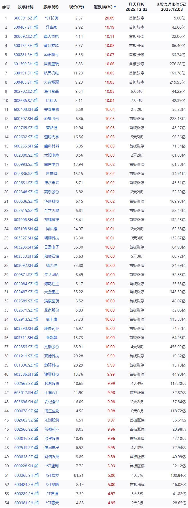 今日涨停个股
